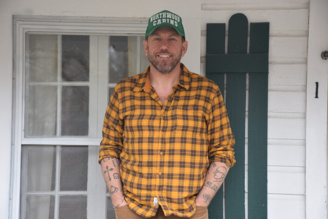 - Matt Showalter, one of Northwood Cabins’ new owners, smiles in front of one of the cabins in Tupper Lake on Thursday. (Provided photo)