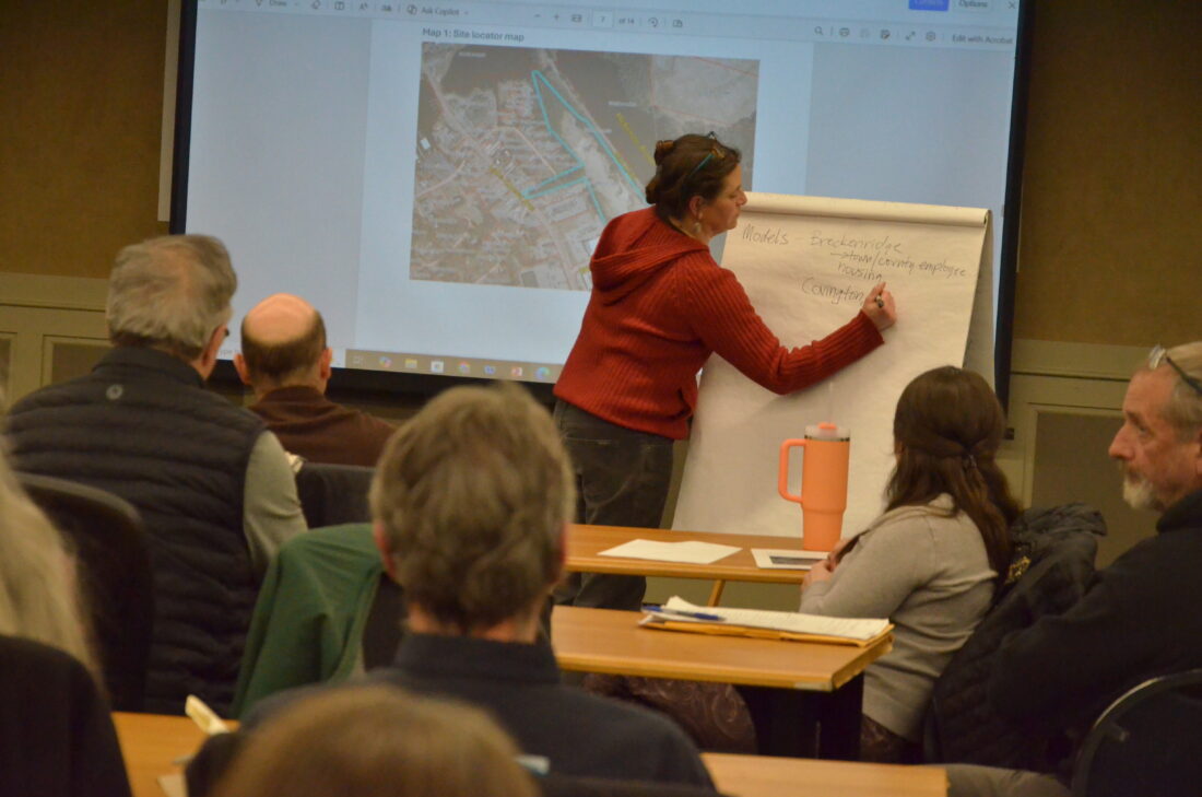 The Saranac Lake Housing Task Force was holding a public session on a potential housing development at the 10-acre lot the village owns off of Will Rogers Drive. The project is still very early in its inception, and the people at the meeting had a variety of ideas and views on what the project could be, what it needs to be feasible and the big question – “What kind of housing?”