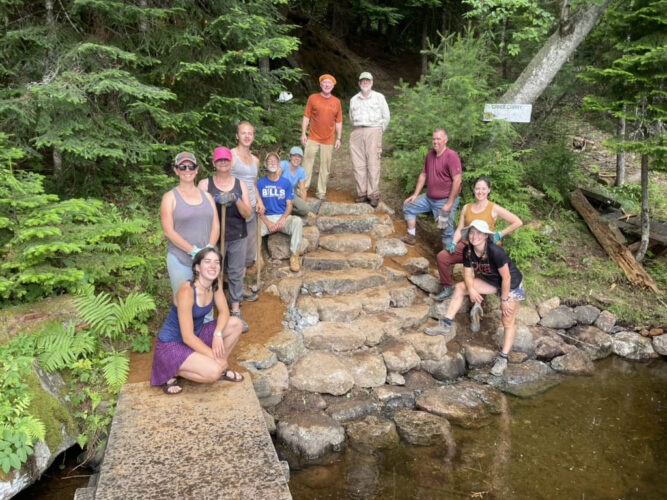SARANAC LAKE — A professional trail crew and local volunteers teamed up earlier this summer to continue the rehabilitation of the Lower Locks portage trail.