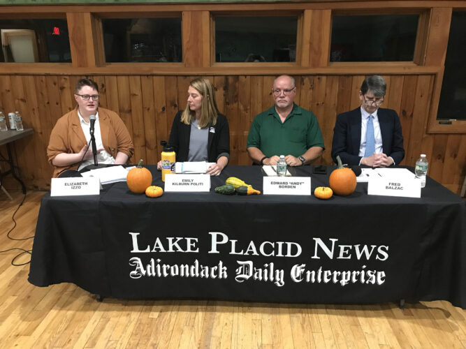 LAKE PLACID — Three of four candidates running for a seat on the North Elba Town Council discussed some of the top issues facing the town during a forum hosted by Adirondack Daily Enterprise Managing Editor Elizabeth Izzo at the Shipman Youth Center in Lake Placid on Monday.