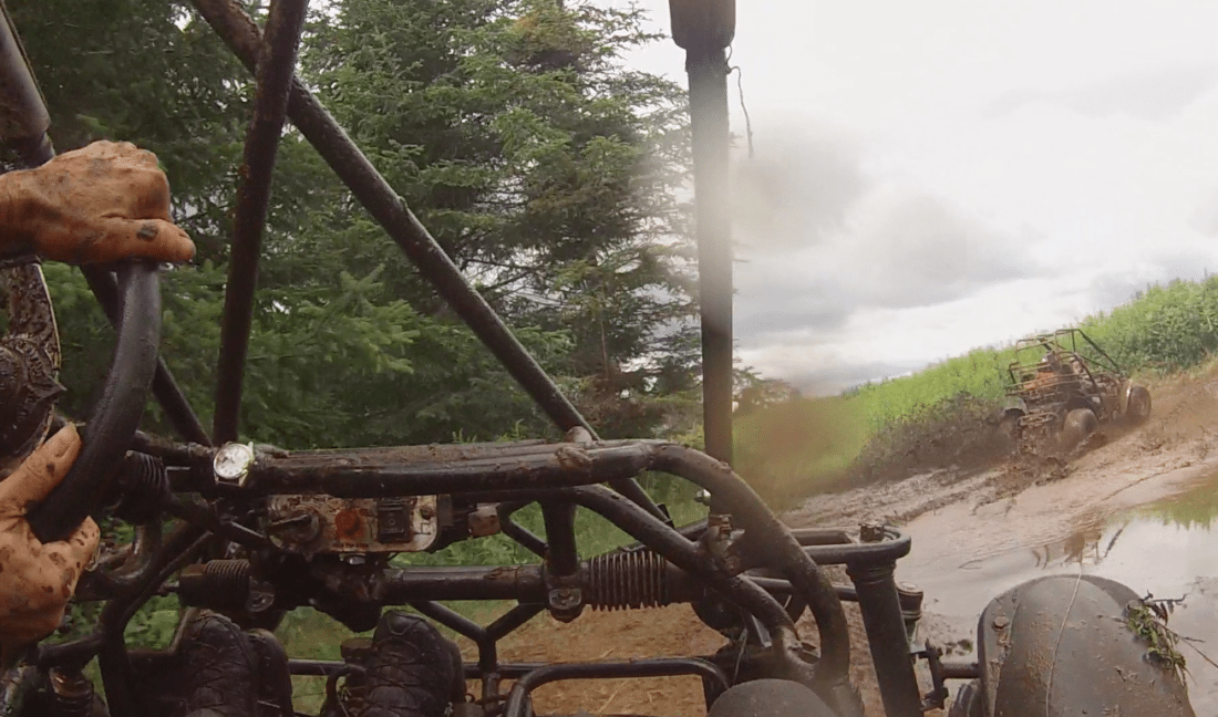 Mud fun on the farmhouse go-carts