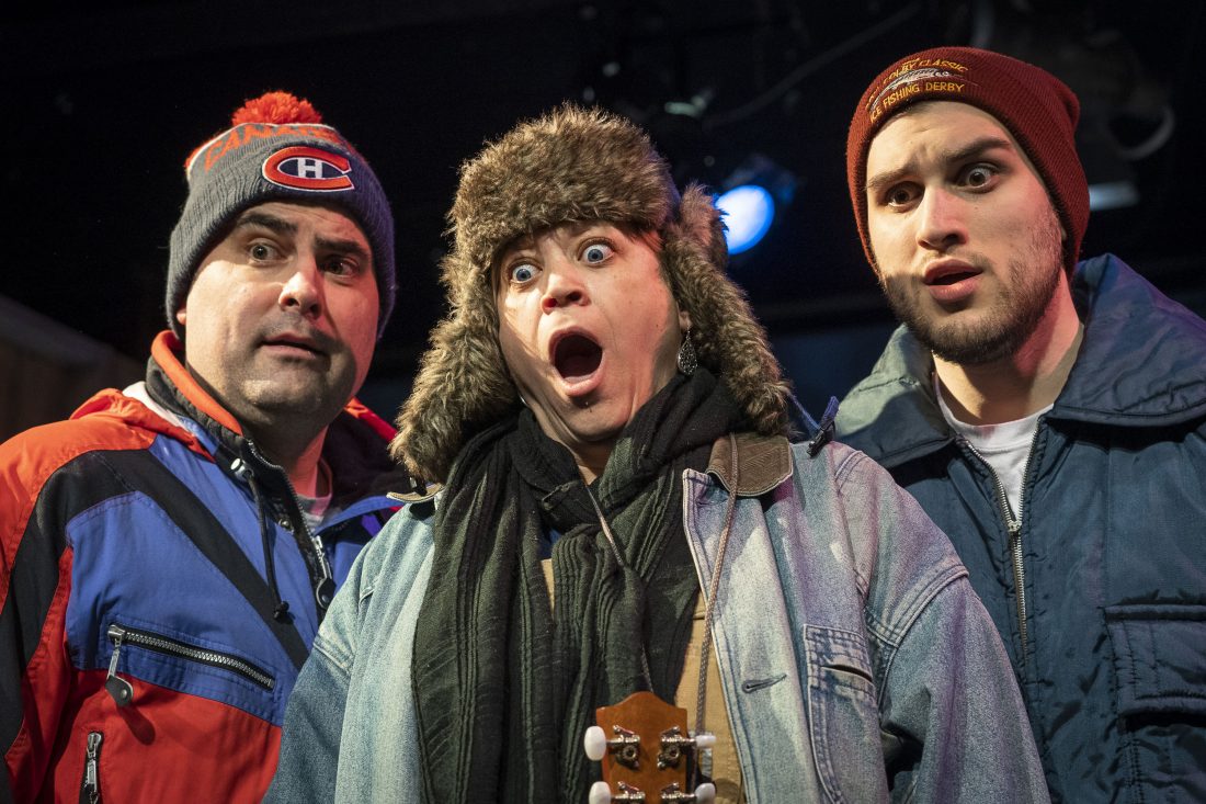 Lucky Cerruti, Brendan Gotham and Brandy Clark play the three fishing buddies who sing and dance delivering songs like “Ode to a Snowmobile Suit” (“From the top of your hat to the tip of your boot, when it’s 30 below, there’s no substitute for the comfort and warmth of your snowmobile suit”), “On Thin Ice” and “There’s 12 Beers in a 12 Pack.”
