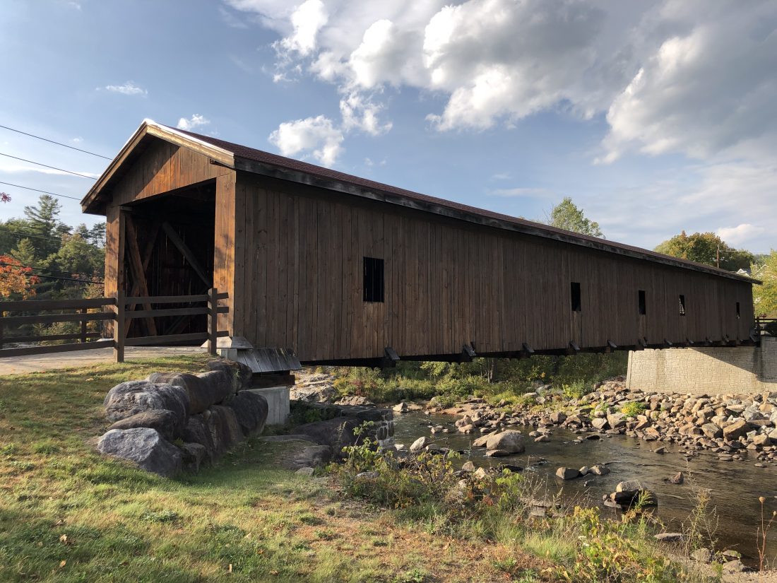 The Jay Covered Bridge is the perfect place for relazation and seasonal views. (Photo provided — Diane Chase)