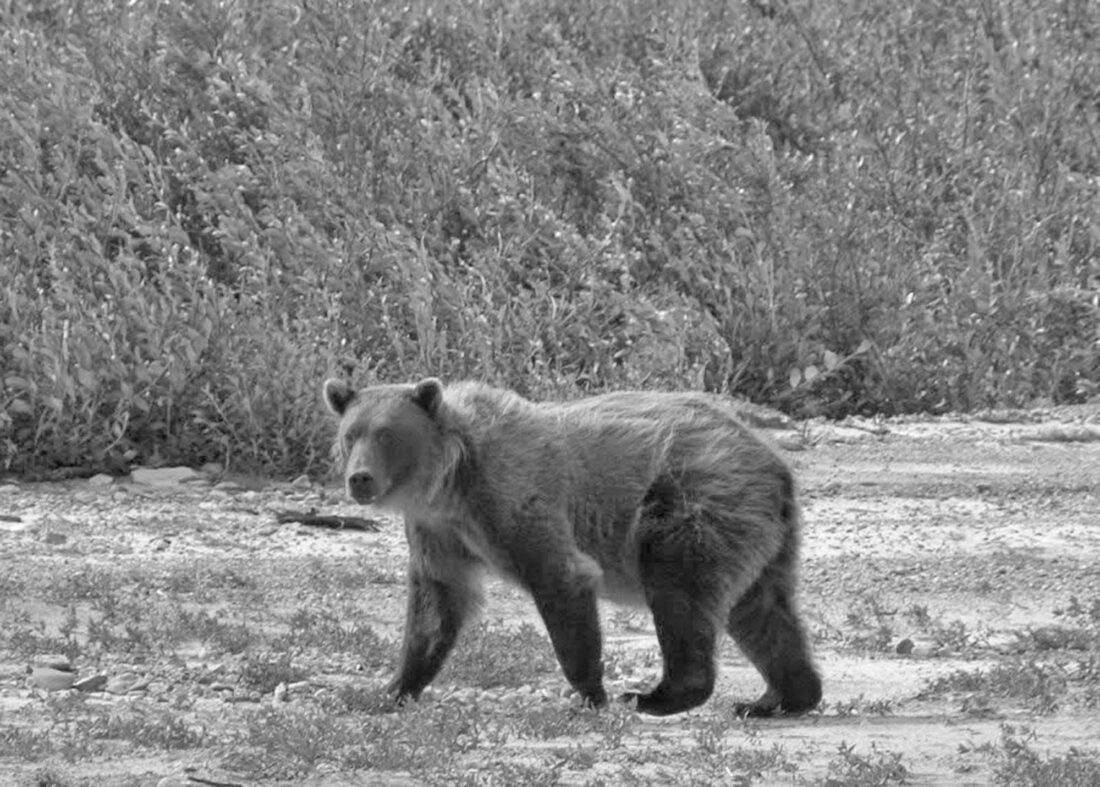 I grabbed both and ran to them. Ed and Karen Hixson joined us and Doug said, “You just missed it! There was a grizzly bear about a hundred yards upriver along the shore!”