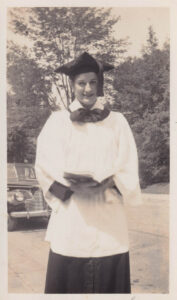 Historic Saranac Lake needs your help identifying the who, what, where, when and/or why of this photo. We’re still making our way through unidentified photographs from Kollecker’s Kodak & Gift Shop. This one shows an unidentified young woman wearing some kind of choir or graduation robe, but we don’t know anything about her. Do you recognize her? Maybe you know something about the car behind her that could help us date the photograph? Or maybe you recognize her outfit? If you can help, call the museum at 518-891-4606 or email mail@historicsaranaclake.org. (Photo provided — Historic Saranac Lake Collection, 2024.2.237.)