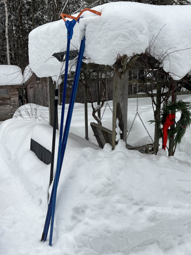 Snow roof rakes stand at the ready. (Provided photo — Diane Chase)