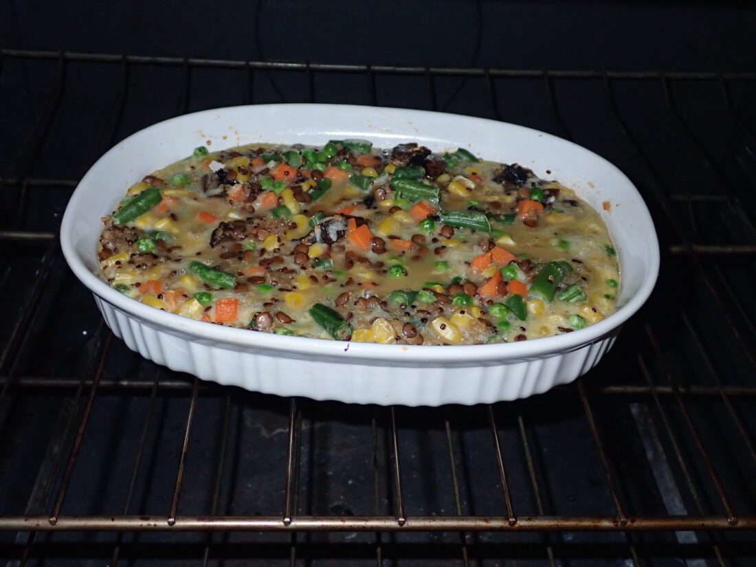 12 oz. frozen vegetables of your choice (good choice: peas & carrots, or cut green beans or broccoli if using mushrooms, or frozen mixed vegetables)