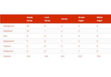 The nutritional value for various sweeteners is given as a percentage of Recommended Daily Value (DV) per cup (60 ml). (Canadian Nutrient File [Health Canada] and USDA Nutrient Database)