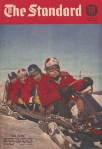There I go again backing into a story. What prompted those lead paragraphs? I have a copy of a 10-by-15-inch Montreal tabloid newspaper, The Standard dated Feb. 15, 1947 (I was still in high school), and on the cover page, blown up and in color, is the Saranac Lake Red Devils bobsled team.