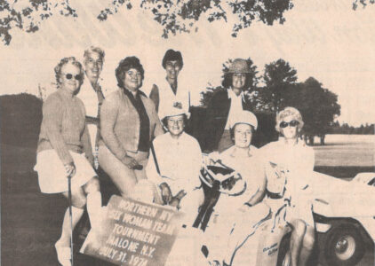 - Members of the Saranac Lake Golf Club who placed fifth in the Northern New York Interclub Tournament which was held in Malone. In the front row, from left to right, are Midge Gledhill, Jeanette Valdez and Evelyn Morgan. The two tall women standing at the rear are Kate Sturdy and Katie Fobare. In the middle, left to right, are Helen Bruso, Lynn King and Rita Sageman. (Enterprise photo)