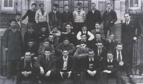 - No names are listed under this photo, again courtesy of the Adirondack Room of the Saranac lake Free Library — but George Doty is in here somewhere. This was 1939 and George was captain of the team the next year. I probably should not mention — to help ID any players, call Bud Duffy. I did that last week and Bud received four phone calls. So I won’t suggest that this week. Information under the photo reads in part: “The first call for footballers was answered by such veterans as co-captains Lew Kelly and Ray LaRose; ‘Scratch’ Doty ‘Tich’ Kelly, Lou D’Onofrio, ‘Bullet’ Smith, ‘Doc’ Myatt, Ozzie Lowenberg, ‘Murph’ O’Donnell, John Demming and Dick Sennett. Along with newcomers, Jim Harrigan, Dave Potter, Ben Banker, John Dreyfors and George M. Eleven comprised a squad that totaled 75 to comprise the largest turnout in school history.” (On the right in the suit and tie is handsome coach Art Mahoney, shortly before he left to become an Army ranger seeing combat in WWII.)