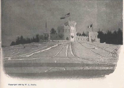 - 1909 Ice Palace — Photo by W. L. Distin. I believe the location was where the North Country Community College Administrative offices are today when the knoll at the top of Winona Avenue was a bare hill. (Provided photo)