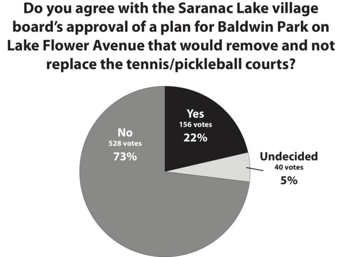 This week's straw poll: Do you agree with the Saranac Lake village board’s approval of a plan for Baldwin Park on Lake Flower Avenue that would remove and not replace the tennis/pickleball courts? - This poll is not scientific, and its results represent only the opinions of internet users ...