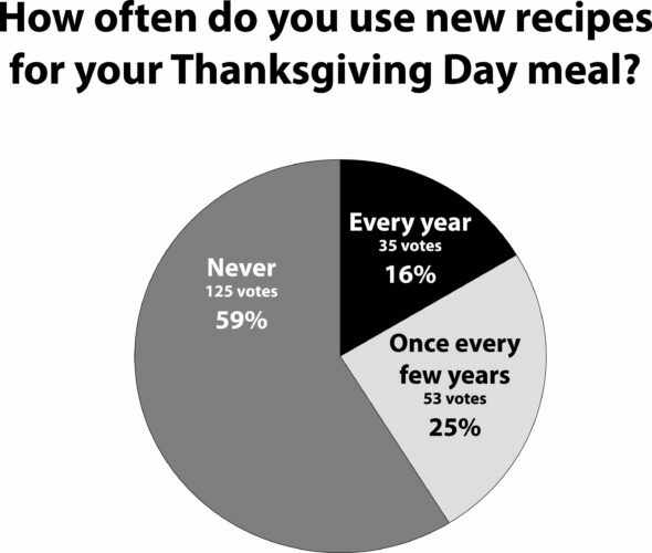 This week's straw poll: How often do you use new recipes for your Thanksgiving Day meal? - This poll is not scientific, and its results represent only the opinions of internet users who have chosen to participate.