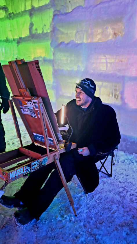 Michael Burpoe paints the Ice Palace. (Provided photo)