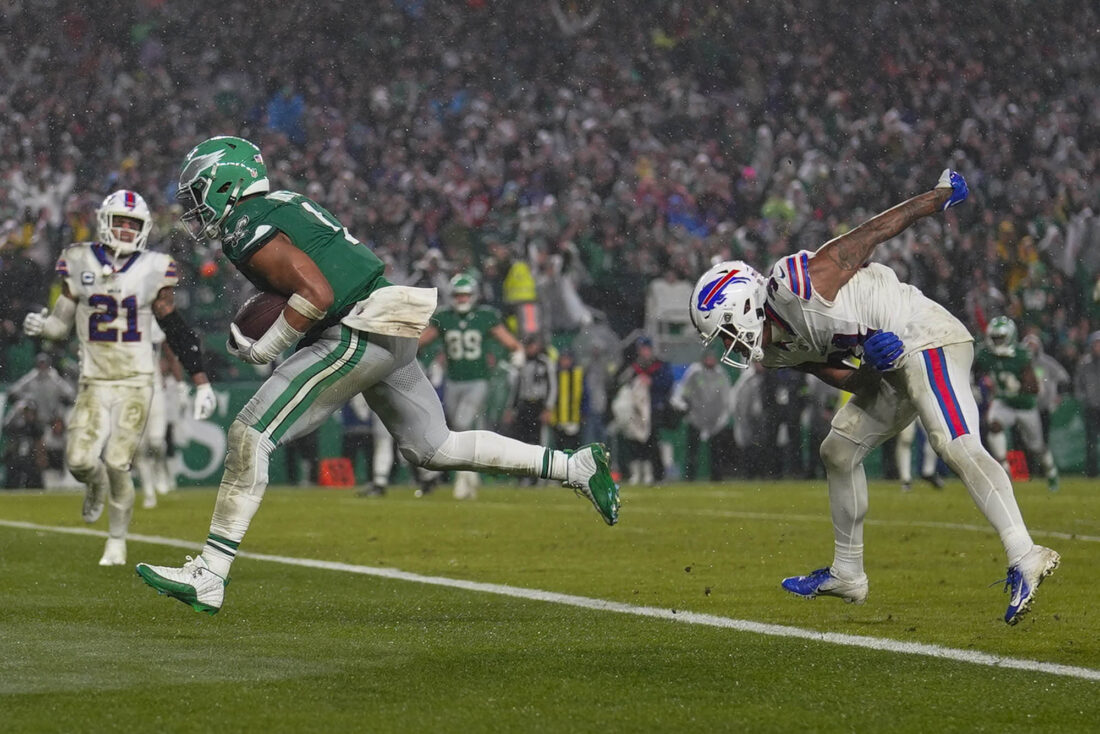 Allen threw for 339 yards and two touchdowns and ran for 81 yards and two scores for the Bills, who are in danger of missing the playoffs after winning the AFC East the past three years. But he was intercepted in the fourth quarter by James Bradbury, setting up Hurts’ 29-yard TD pass to Zaccheaus for a 28-24 Philly lead.