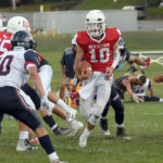 Saranac Lake sophomore quarterback Rhett Darrah runs with the ball during action a week ago against AuSable Valley. (Enterprise photo — Lou Reuter)