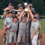 The Saranac Lake Elks team celebrates after winning the Minors youth baseball championship Wednesday night with a 7-3 victory over Acre ADK. The Elks, also known as the “Pink Slippers,” were winless throughout the regular season, but rallied in the playoffs with a win over Sandy Hayes Realty, the top-ranked team, in the first round, a victory over Tupper Lake in the semifinals and then Wednesday’s win over Acre Adk to complete the incredible turnaround. Saranac Lake Surge players Alex Wyndanch and Tyler Hill umpired the championship game. The players were inspired by bubble gum and a pair of pink slippers that the players would touch prior to each at-bat. The Elks team includes Elias Willett, Owen Hybicki, Liam Stoddard, Thomas Kilbourne-Hill, Kai Bowden, Benjamin Ziemann, Colden Robinson, Bryce Fletcher, Alius Martelle, Cooper Barry and Finn Maiore. Coaches are Mark Gillis, Brent Landis and Dan Hill.