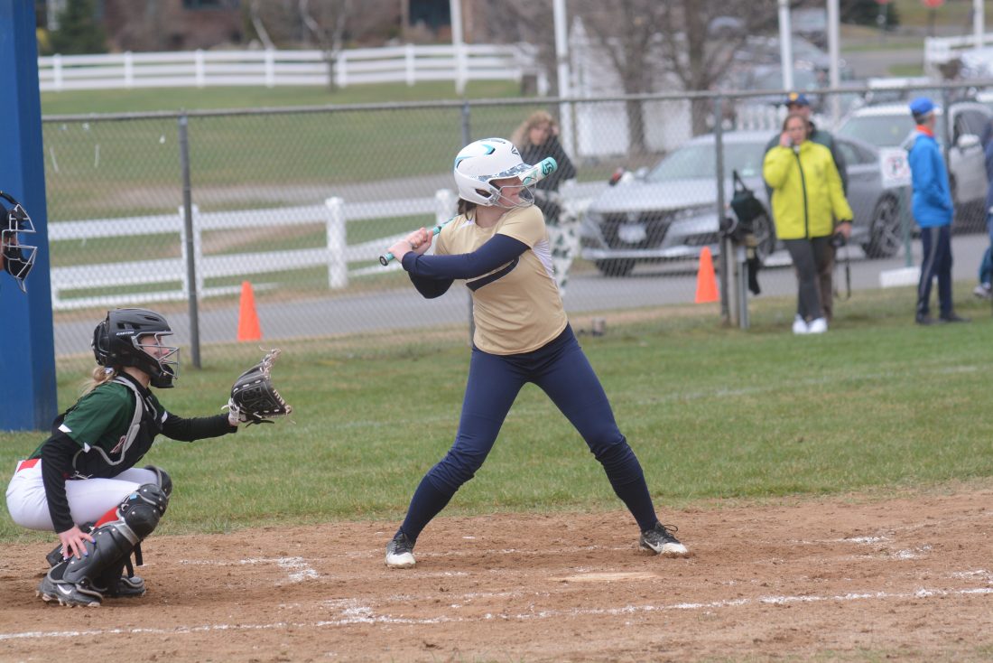 Lake Placid's Megan Quinn gets ready to swing during Tuesday's home opener against Bolton/Schroon Lake. (Enterprise photo — Parker O’Brien)