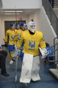While Ukraine will return to the ice against Latvia on Saturday at Roos House at 4:30 p.m. Krivoshapkin still remembered what it was like back home and he didn’t want people to forget about the invasion.