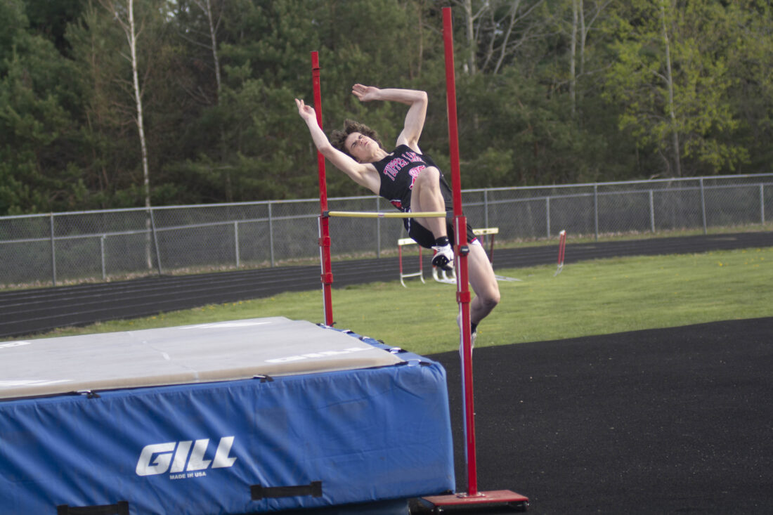 Tupper Lake’s Logan Flagg competes in the high jump competition during Thursday’s meet. (Enterprise photo — Parker O’Brien)