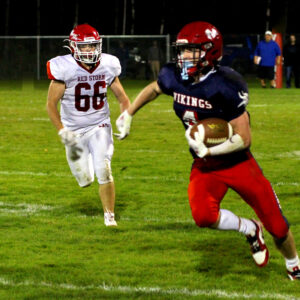 In the first eight minutes of the game, there were two Red Storm fumbles and a Moriah onside kick. Before one could blink, the Vikings were up 22-0 and never looked back.