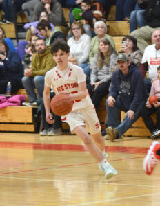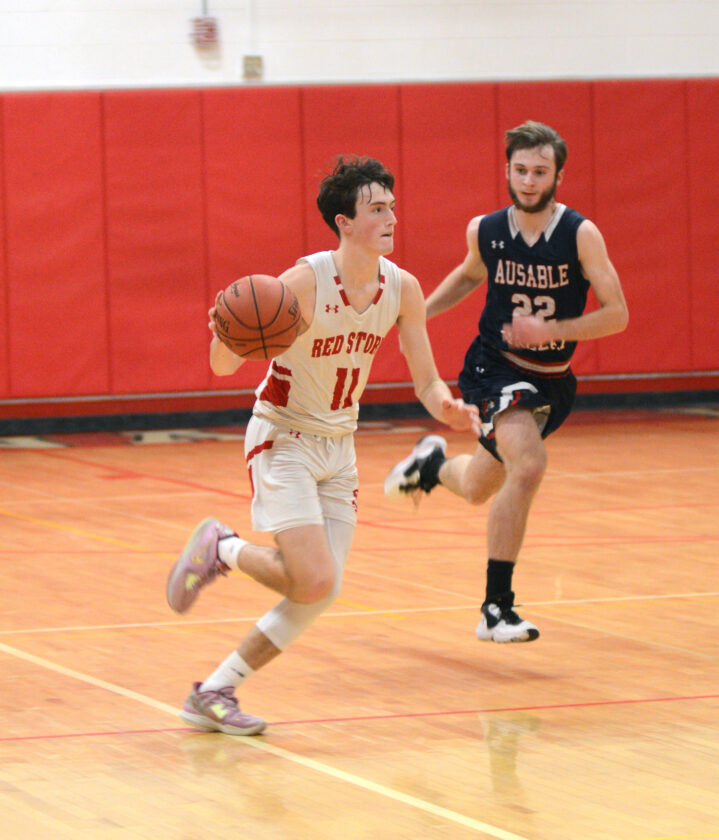 Caleb Akey, who leads the Red Storm in scoring this season, was held to just eight points, due to AuSable Valley playing what Crist described as a “junk defense,” in which a Patriots defender honed in on Akey to prevent him from scoring. The senior guard played more of play-making role in Monday’s contest.