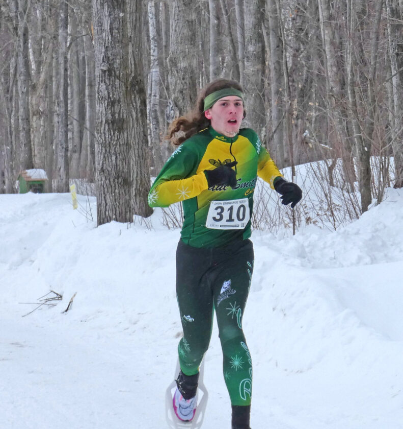 - Paul Smith’s Eliot Soderholm races in the Hammond Hill’s Snow Squall Snowshoe Race on Saturday in Ontario. (Provided photo)