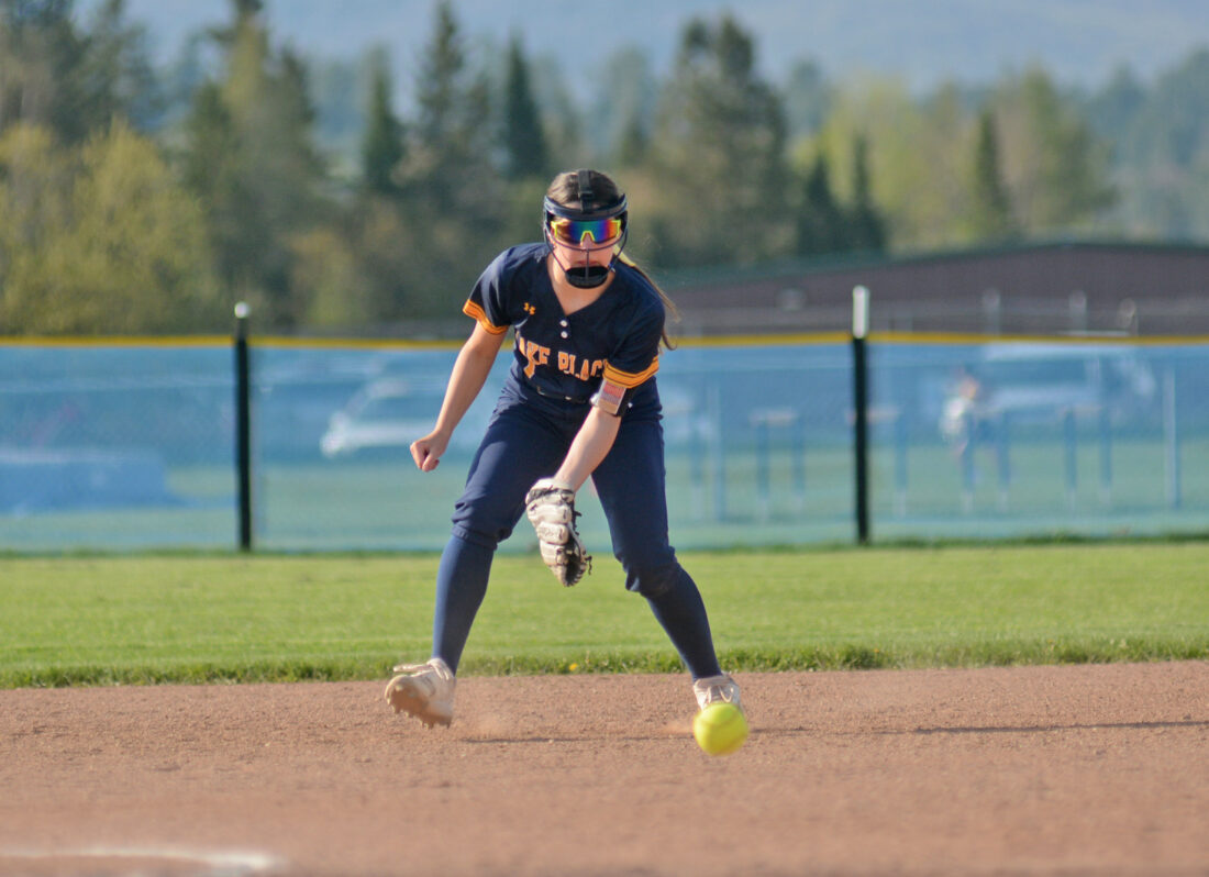 - Lake Placid’s Addy Colby gets ready to field the ball during Tuesday’s home game. (Enterprise photo — Parker O’Brien)