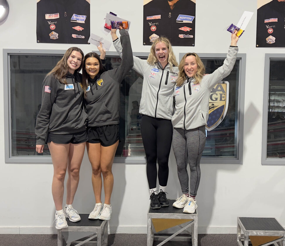 - From left are USA Luge’s women’s doubles teams of Maya Chan and Sophia Gordon in second place and Chevonne Forgan and Sophia Kirkby atop the podium, following the USA Luge start championship on Friday in Lake Placid. (Provided photo — USA Luge)