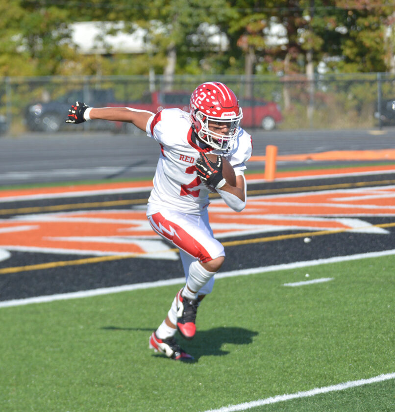 Up 14-0, Saranac Lake’s first punt attempt of the game sailed over its punter’s head, as Plattsburgh’s Josiah Wineglass recovered the ball in the endzone for his team’s first score.