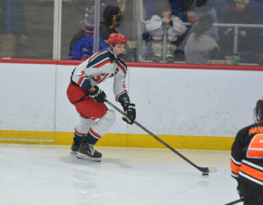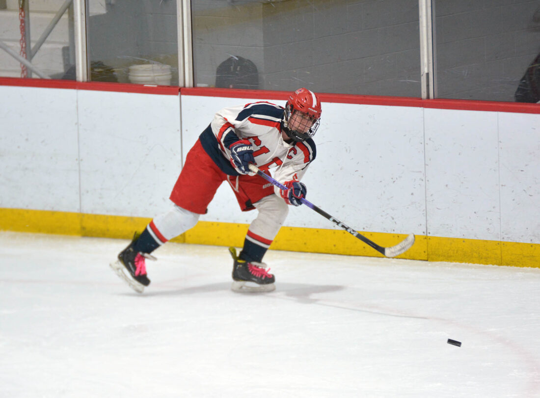 While trailing 4-0, Cobe LaFountain got Northeastern Clinton on the board with a goal assisted by Gage Dumas late in the third period, but the team didn’t score again. The Cougars’ goalie, Greyson LaFountain, had 28 saves. Northeastern Clinton placed third in the tournament after beating Blackstone Valley Rhode Island, 5-2 on Saturday.