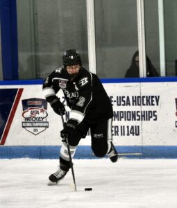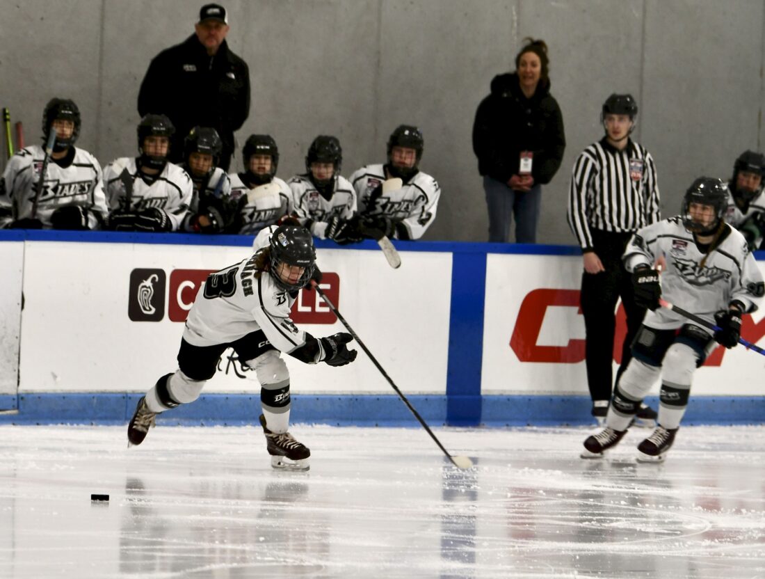 - Canton Blades’ Anna Kavanagh of Tupper Lake skates toward the puck during a USA Hockey National Championships game in Rochester, Michigan. (Provided photo)