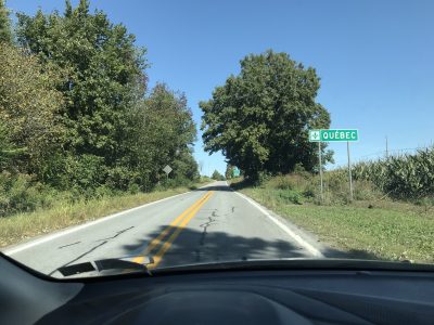 - A sign welcomes motorists to the Canadian province of Quebec just north of the U.S. border from Vermont. (Provided photo — Andy Flynn)